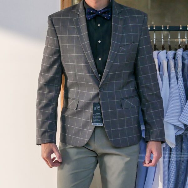 淺灰格紋休閒西裝・日常穿搭超有型
